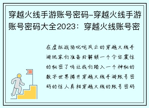 在全球化战略方面,竞技宝首页始终坚持“走出去”的发展方针,积极拓展海外市场。通过与国际知名发行商的合作,竞技宝首页成功将多款热门游戏推向海外,赢得了全球玩家的认可与喜爱。尤其是在东南亚和欧洲市场,竞技宝首页凭借本地化的运营策略和优质的游戏产品,取得了不小的成功。